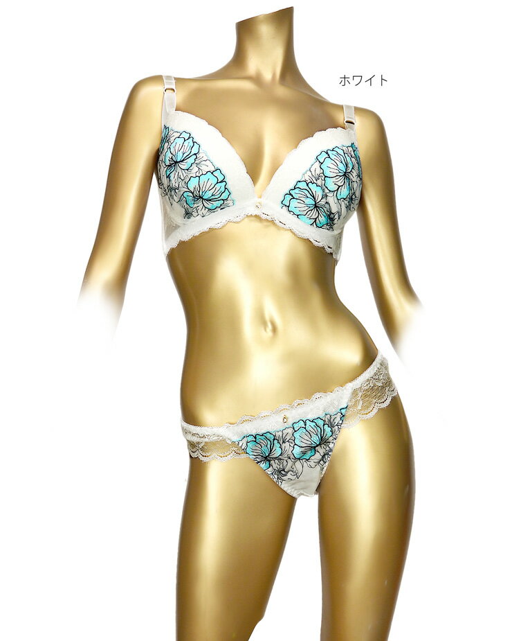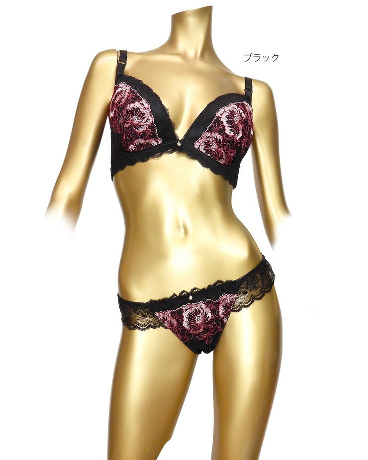 E・Fカップはこちらフラワー刺繍ブラジャー&ショーツセット。